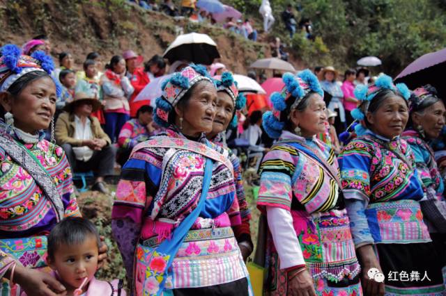 红色象征着去灾灭邪,给人带来幸福,同时也象征着彝族人像火一般热情和对光明的崇拜。