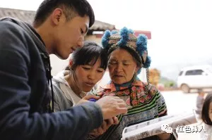 温浩东(左)15年在楚雄彝族自治州禄丰县中村乡向红彝民间彝绣艺人请教彝族传统纹样蕴意。