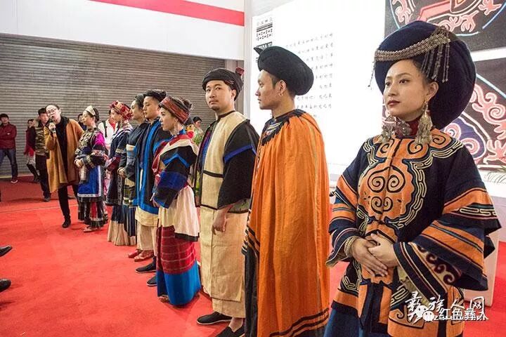 温浩东《中国彝族传统服饰图典》在北京召开推介会现场身着彝族服饰的走秀模特